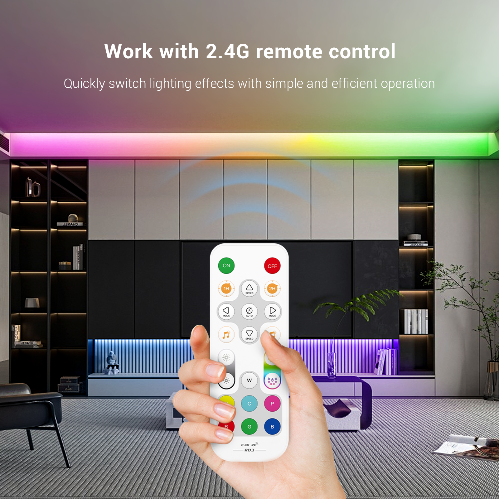 • Color temperature setting, CW/NW/wW:Cold/Nature/Warm White ; R/G/B: Red/Green/Blue