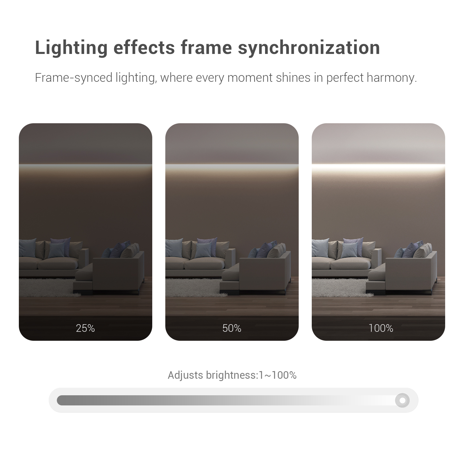 After the grouping is completed, the devices within the group will automatically obtain the wireless frame synchronization function (the music and lighting effects do not have the frame synchronization function), without any manual operation.