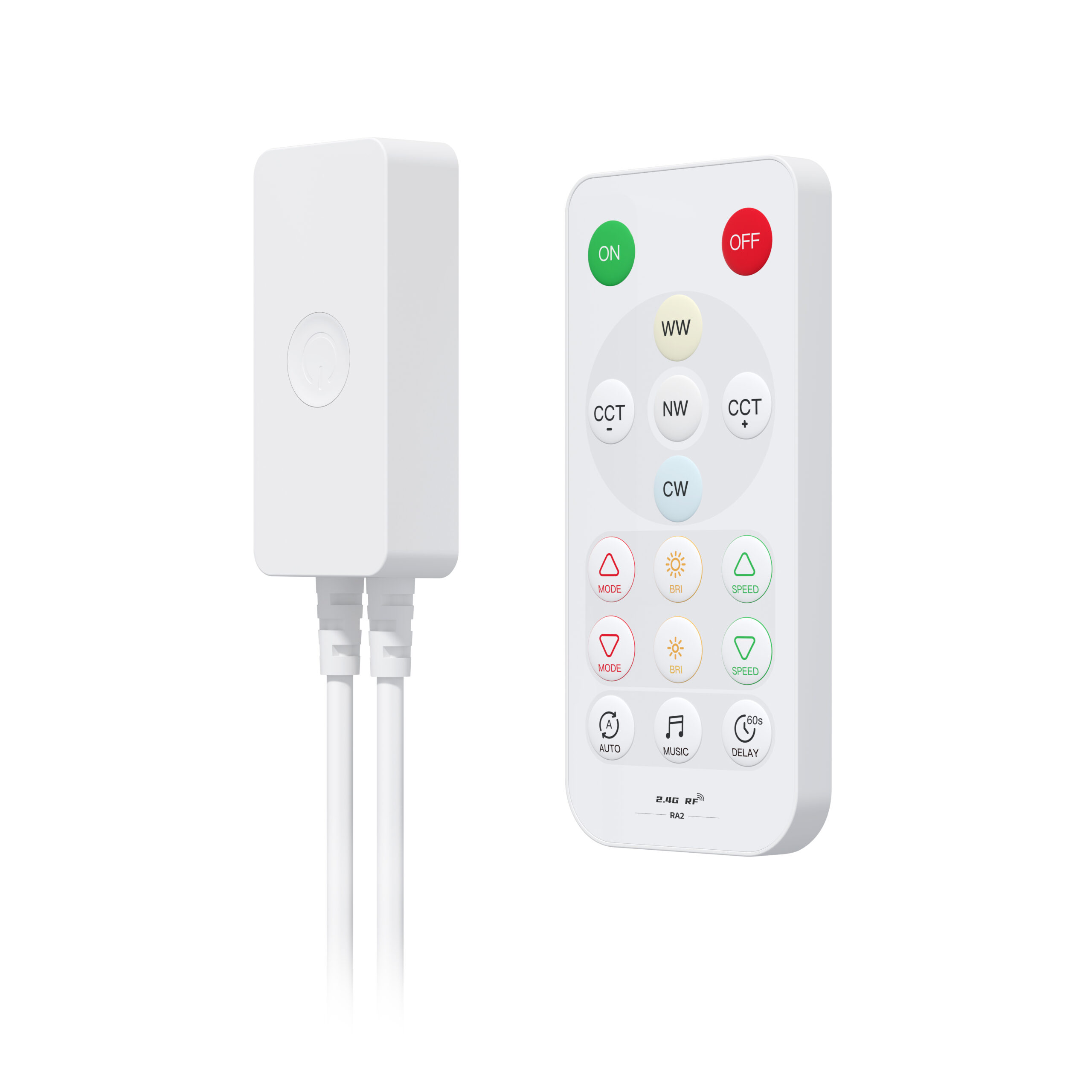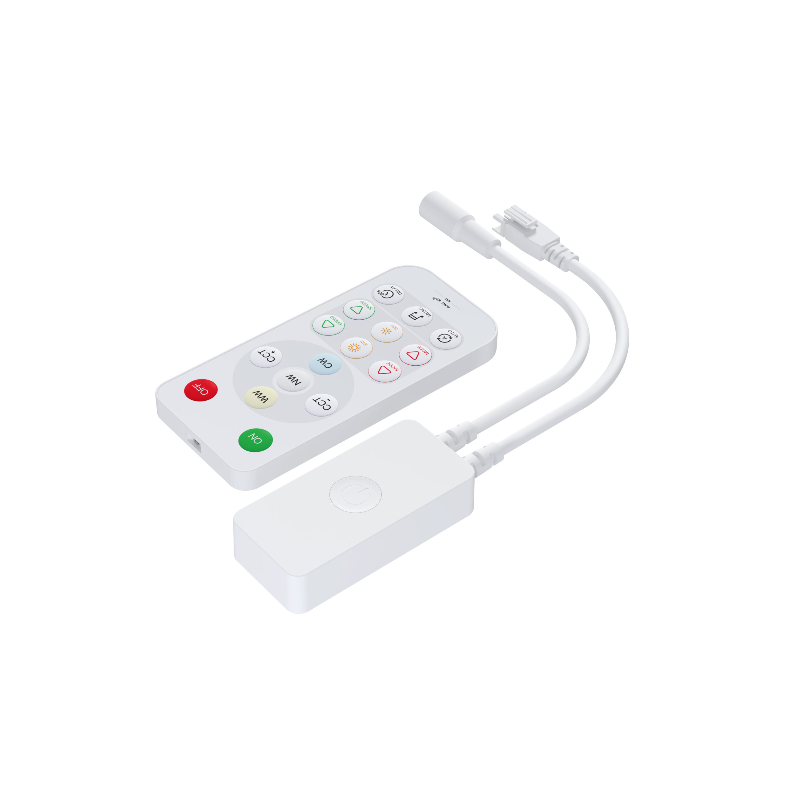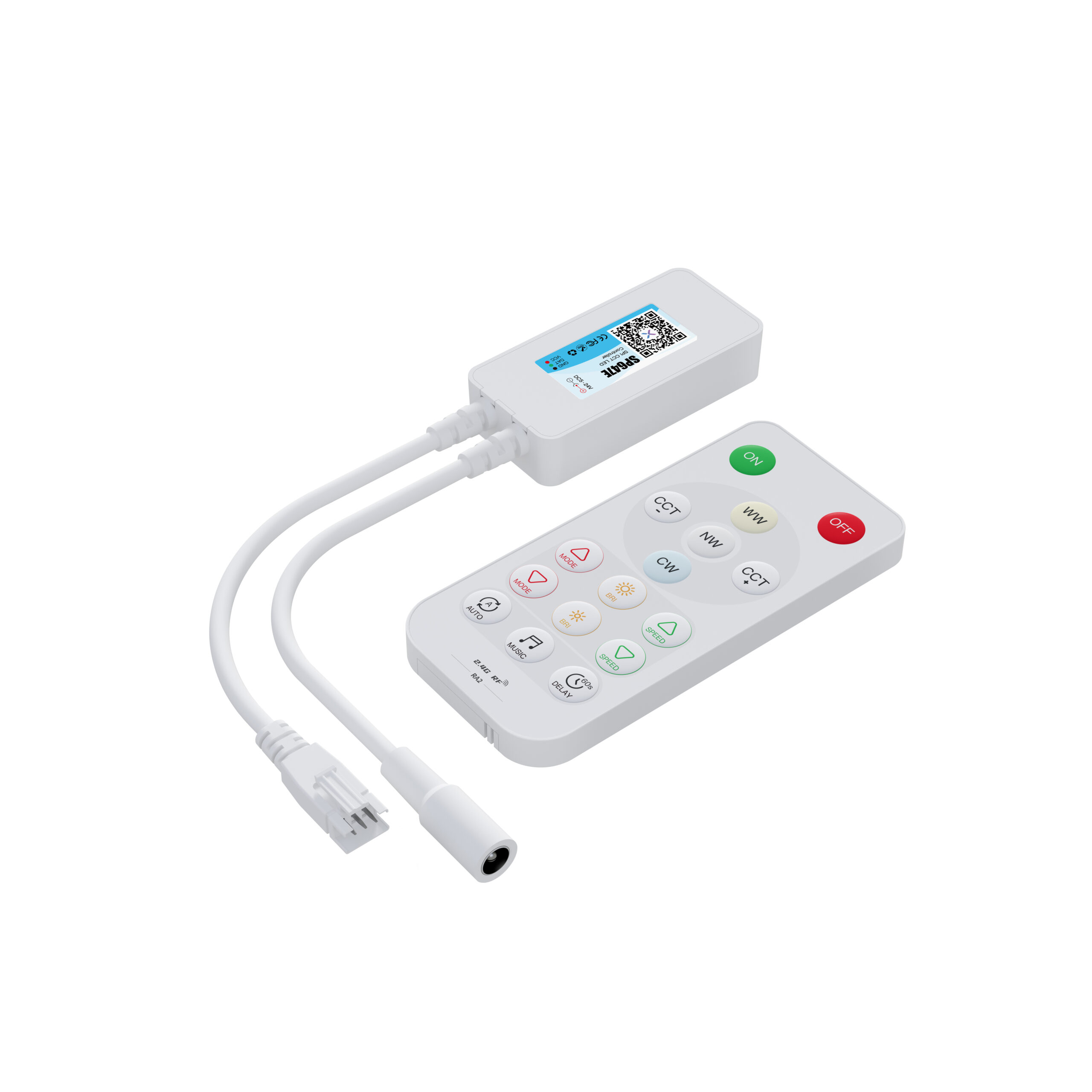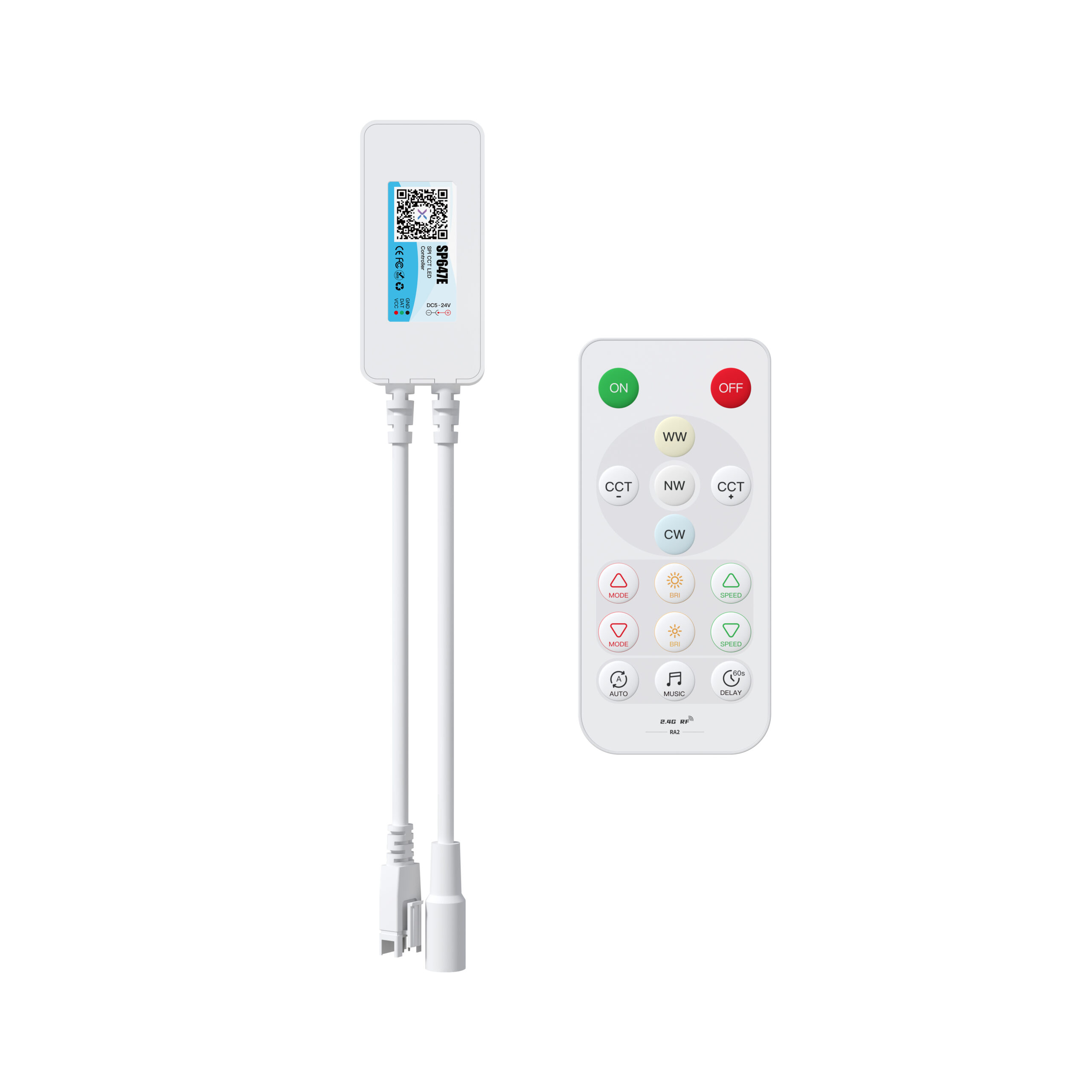 SPl dual channel addressable CCT LED controller,controlling 2 channels ofsingle-wire RZLED driver IC to achieve static dimming,dynamic effects,musiceffects.